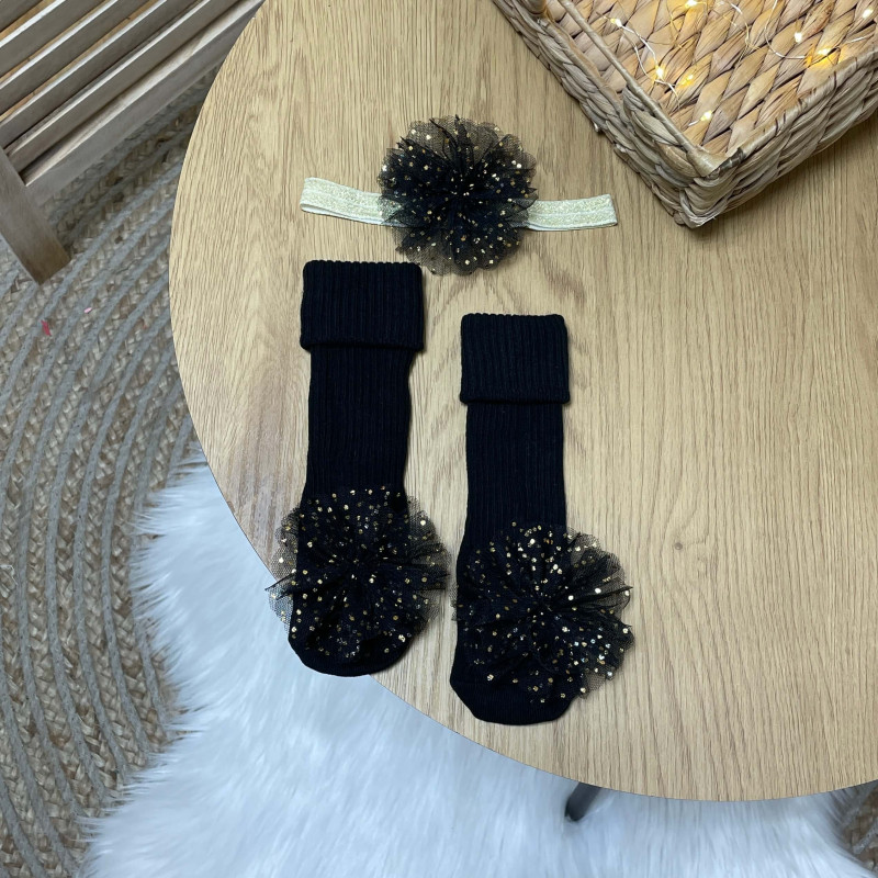 Гольфи святкові для дівчинки з фатіном спереду + пов'язка