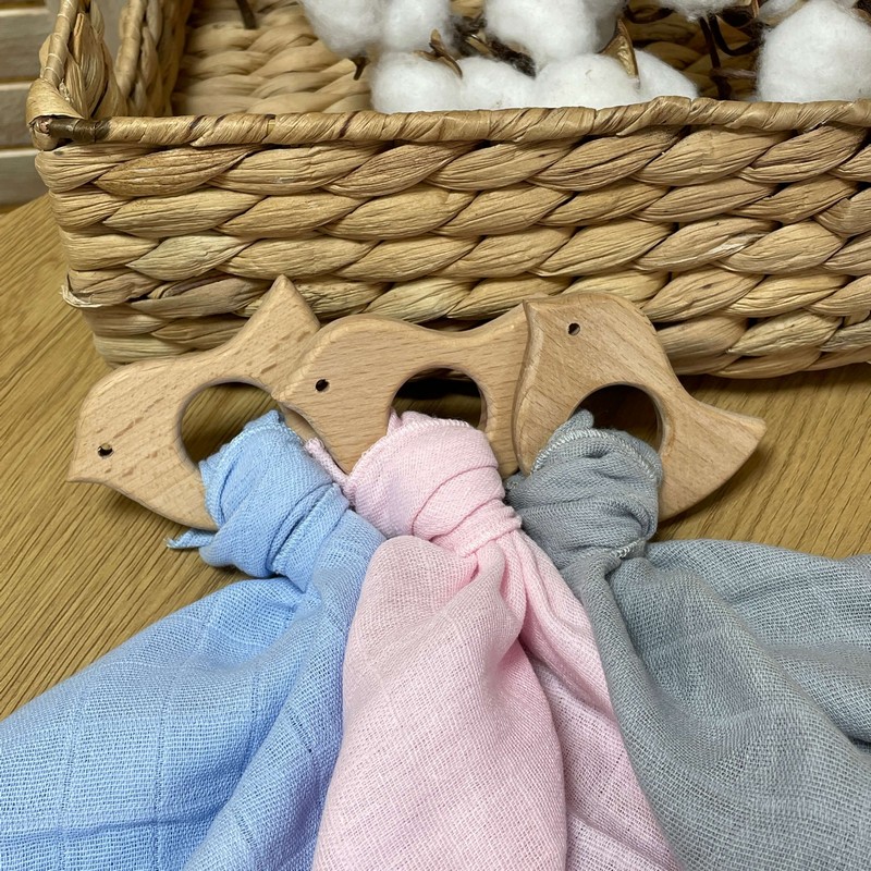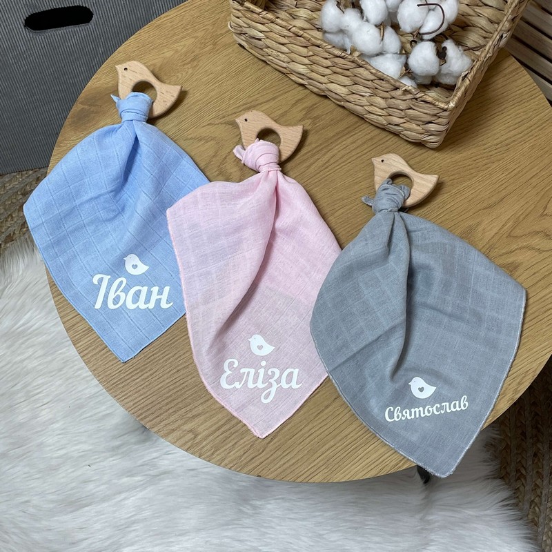 Наш гризунець для немовляти іменний з дерев'яною пташкою з хусткою муслін - це високоякісний і безпечний виріб, який виконує не тільки функцію гризунця, а й допомагає в розвитку вашої дитини. Купуйте його зараз і переконайтеся в його перевагах!