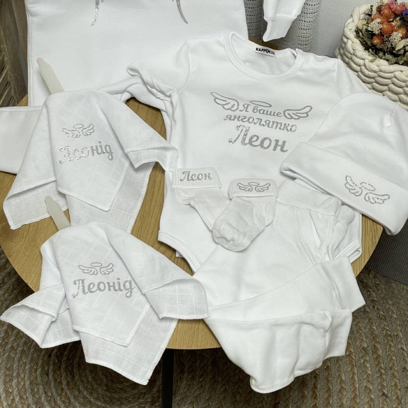 Хрестильний комплект "Янголятко" боді + комбінезон