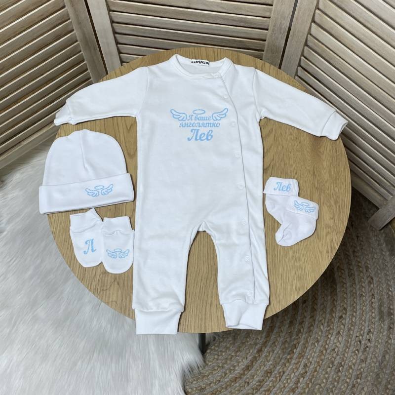 - Сліп з написом "Я ваше янголятко" та іменем дитини.