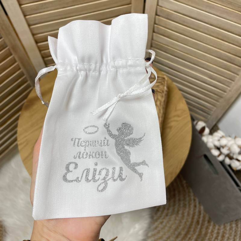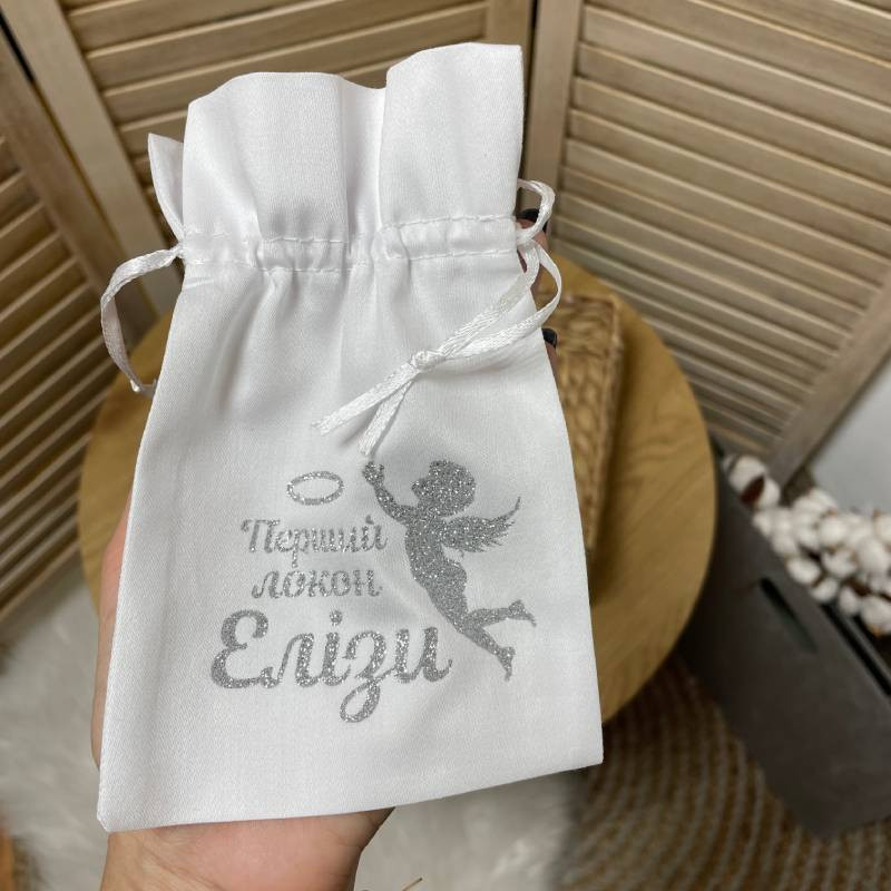 Мішечок для локону - це чудовий спосіб зберегти пам'ять про перший локон вашої дитини. Виготовлений з 100% бавовни (сатин), цей мішечок додасть тепла і ніжності до цього особливого моменту.