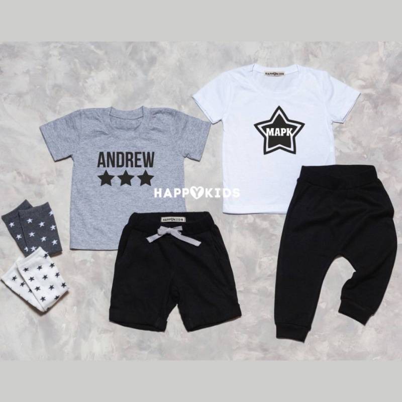Іменний набір одягу для хлопчика з двох футболок та шортів
