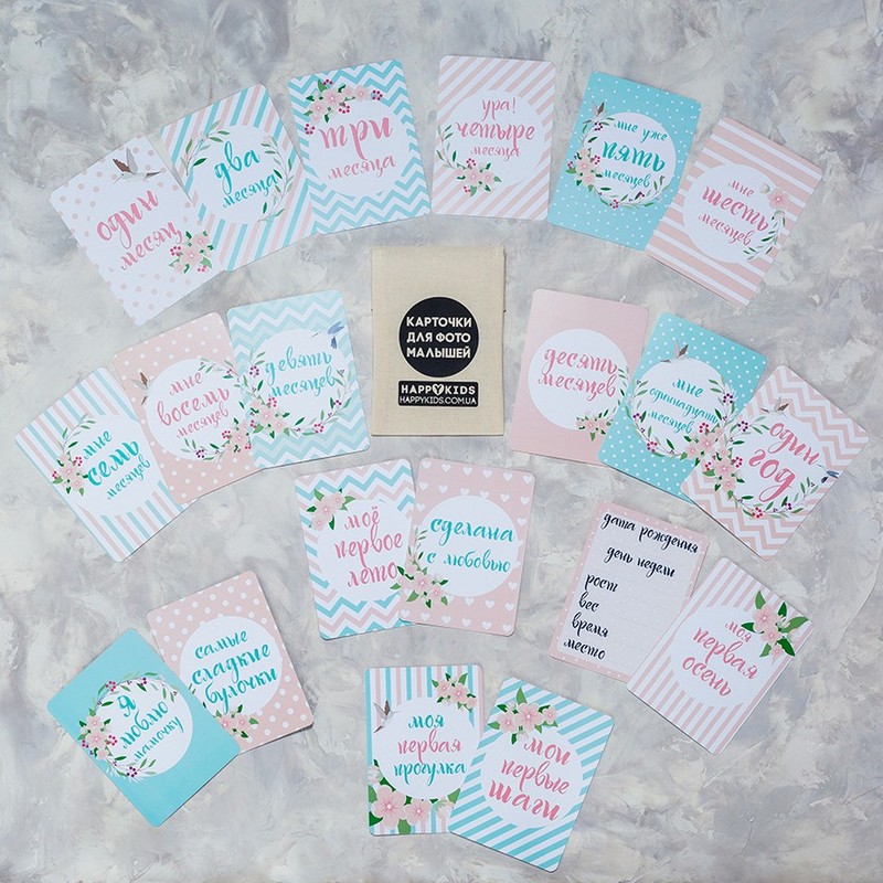 -20 щільних картонних листівок із незабутніми моментами першого року життя дитини