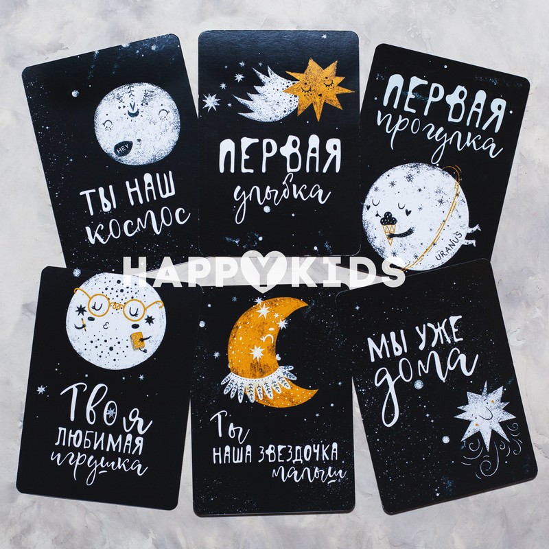 -6 щільних двосторонніх картонних листівок з незабутніми і прекрасними моментами першого року життя дитини.