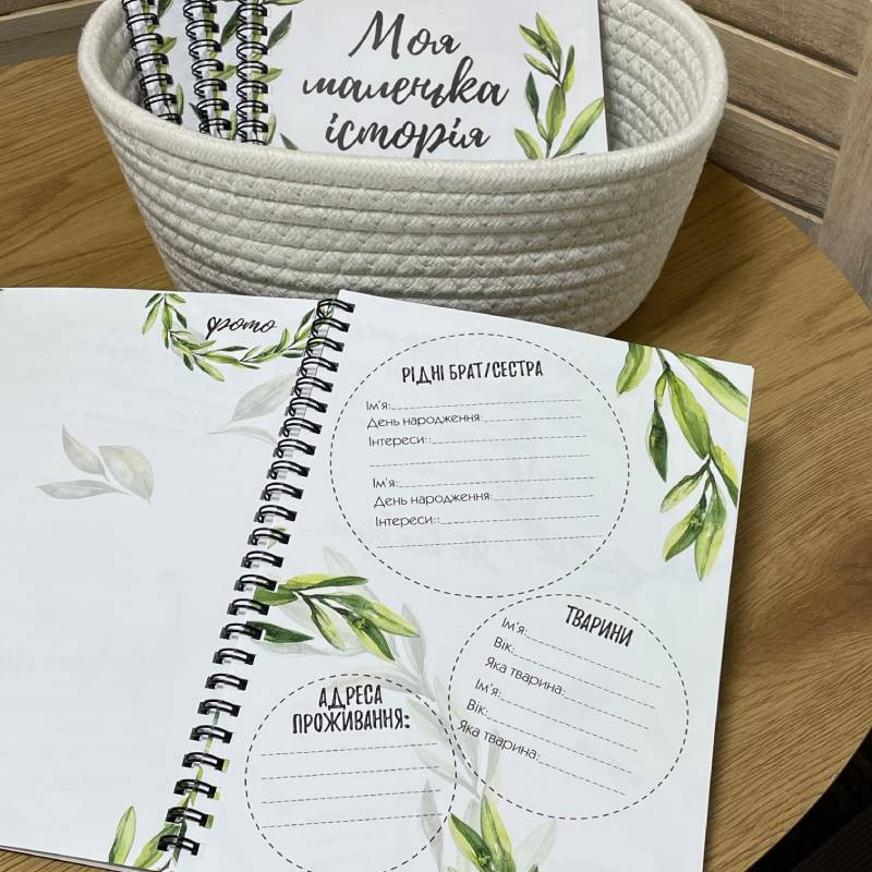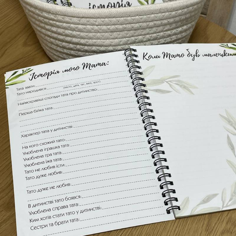 - Розмір книги А5 20*15см, всього 50 сторінок є місце для записів, місця для фото