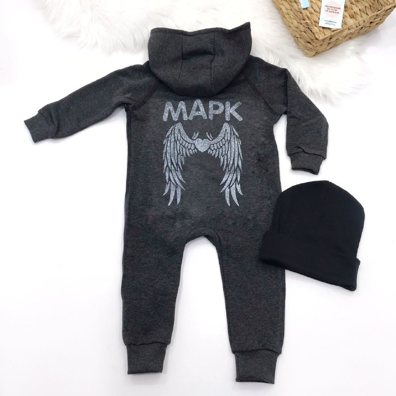 Дитячий комбінезон-ромпер для з оригінальним принтом крилами на спині. Стильний принт і прикольний напис на одягу для новонародженого.