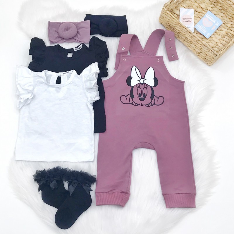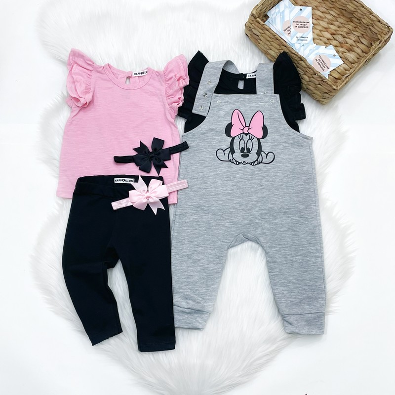 Комбінезон дитячий для дівчинки на кнопочках "Мінні маус з бантиком"