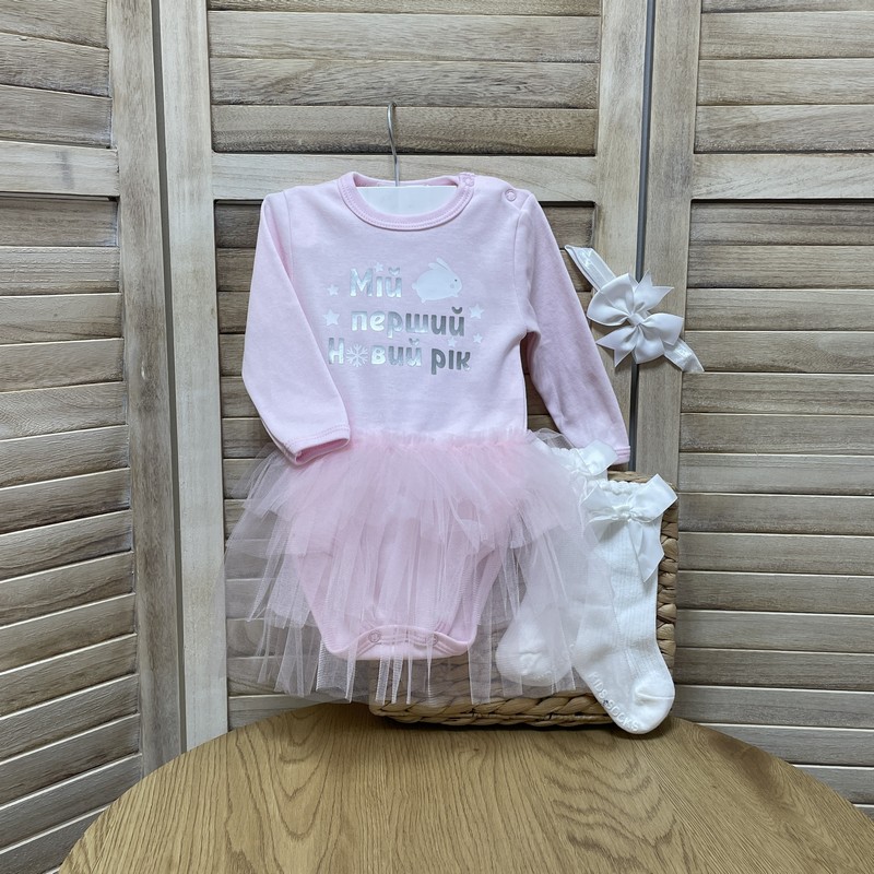 Нарядний універсальний боді підійде новородженій дівчинці або дитині до року. Доповнюй будь-якими аксесуарами на свій смак і створюй свій неповторний новорічний образ.