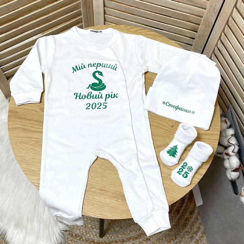 Комплект для новонародженого з символом року 2025 – це стильне та символічне рішення, яке стане особливим у гардеробі малечі.
