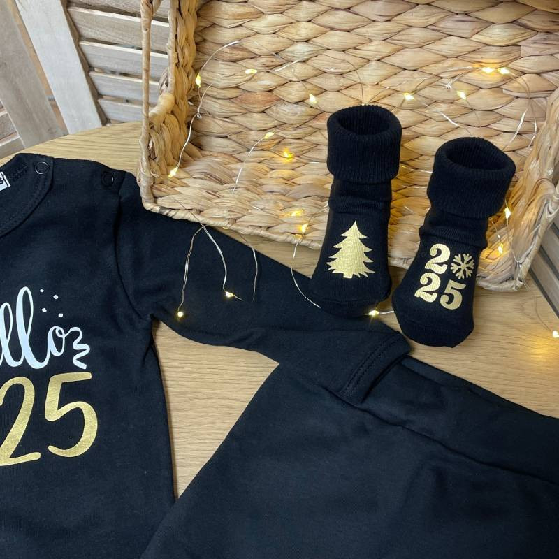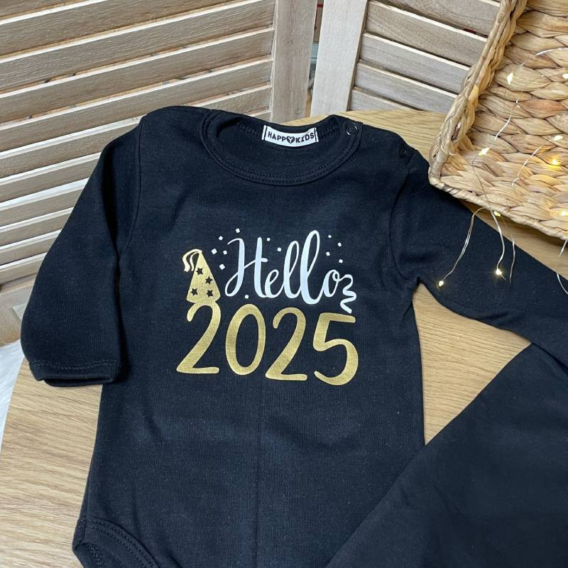 Боді прикрашене святковим написом "Hello 2026", що робить його ідеальним вибором для новорічних свят та родинних фотосесій.