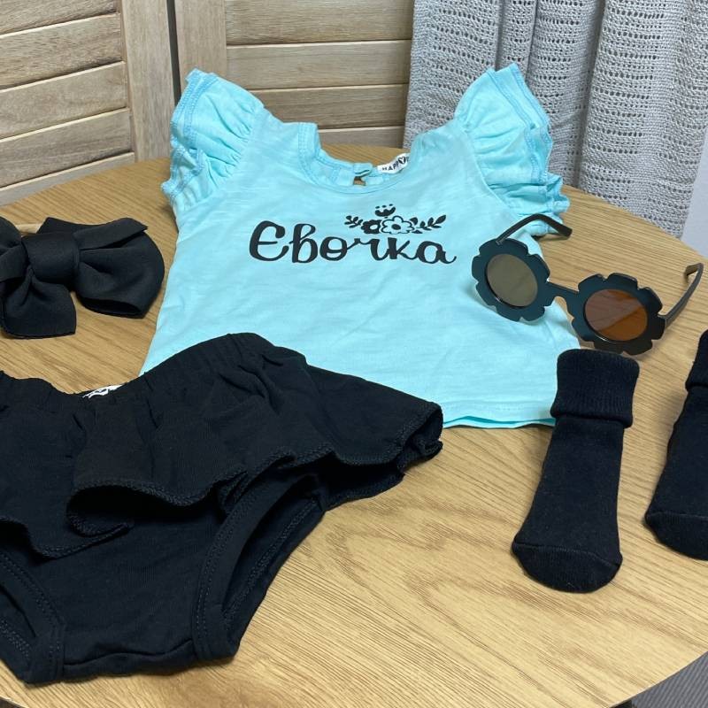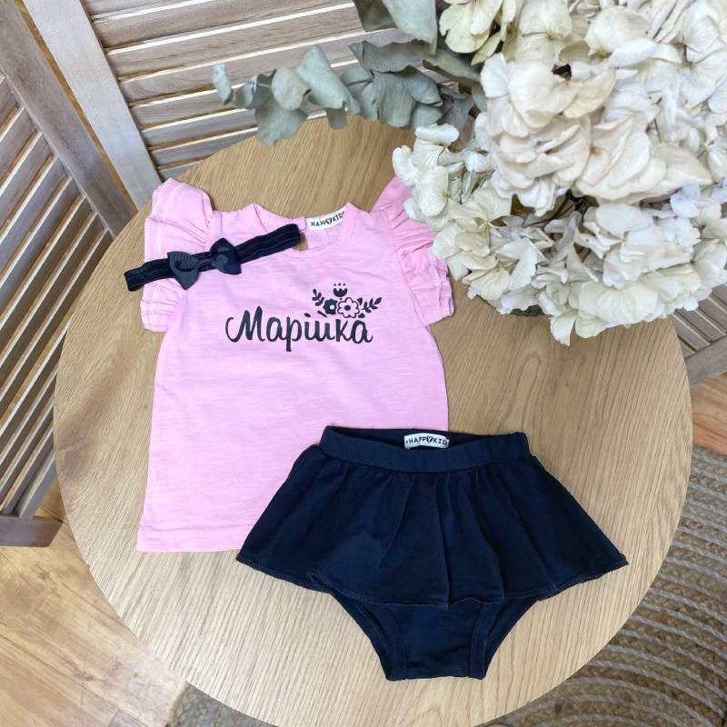 Комплект літній дівчинці з іменем Футболка+трусики 0-1рік
