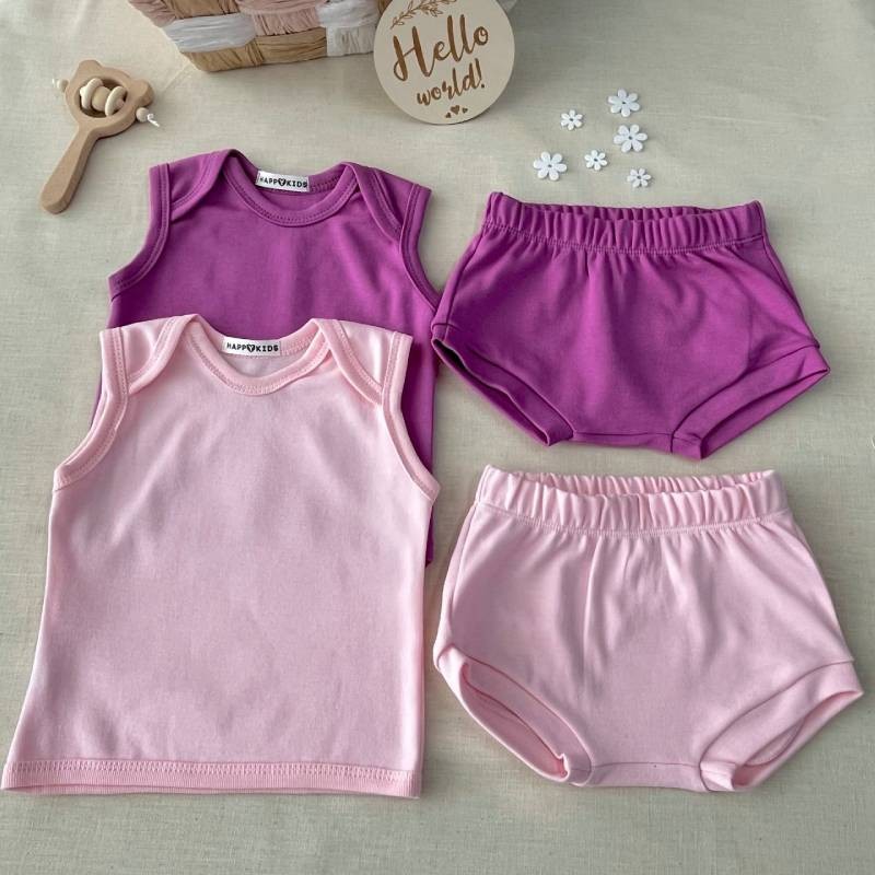 Подаруйте своїй маленькій модниці легкість та свободу влітку з нашим ніжним комплектом для дівчаток. До складу входять яскраві маєчки та зручні блумери — ідеальне поєднання для спекотної пори року. Комплект виготовлений із натуральної бавовни, що забезпечує максимальний комфорт і дозволяє шкірі дихати.