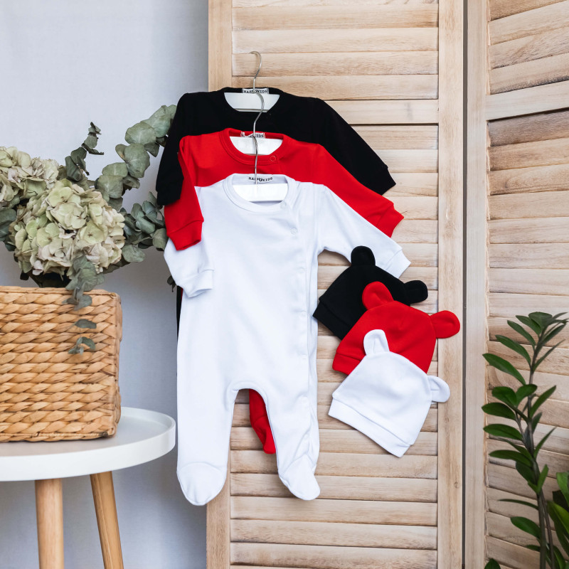 Комплект новонародженим сліп з шапочкою 3шт. білий/червоний/чорний