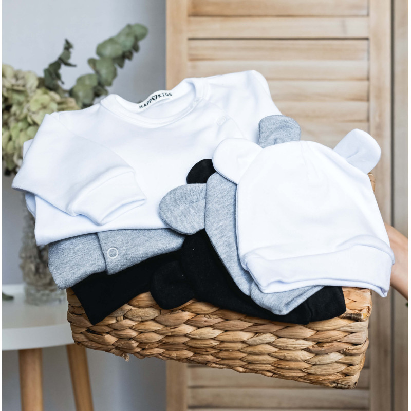 Комплект новонародженим сліп з шапочкою 3шт. білий/сірий/чорний
