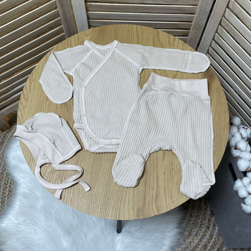 Комплект новонародженому в рубчик боді, штанці, шапочка