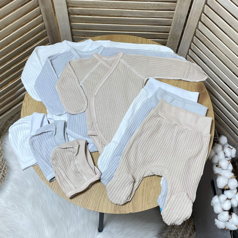 Наш комплект виготовлений з найкращих матеріалів, що дбають про ніжну шкіру малюка та забезпечують комфорт протягом всього дня. Рубчик та боді мають унікальний рубчастий дизайн, який додає особливий шарм вашому маляті. Штани забезпечують вільний рух, не стискуючи дитину, і мають комфортну посадку на талії. Шапочка завершує образ та додає затишку та тепла.