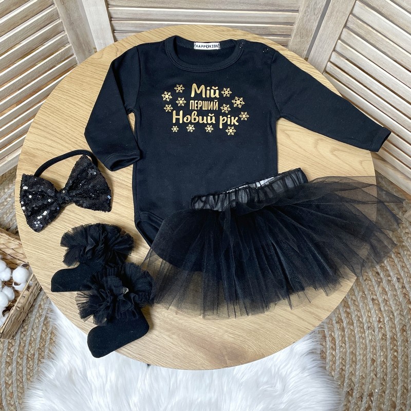 Комплект новорічний дівчинці "Мій перший новий рік" чорний зі сніжинками