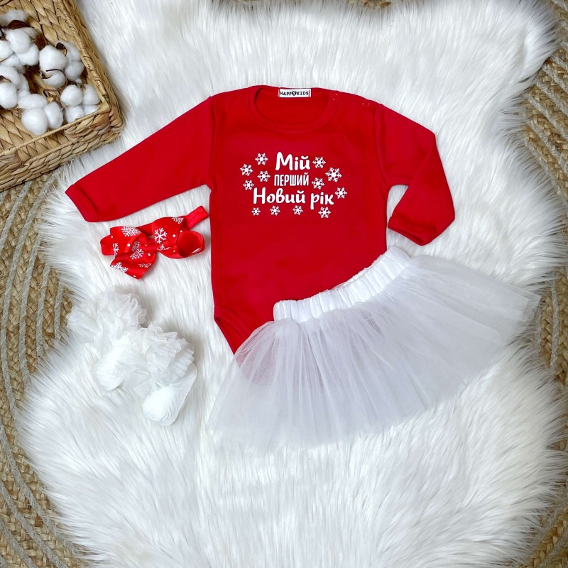 Святковий універсальний боді підійде маленькій дівчинці. Доповнюй будь-якими аксесуарами на свій смак та створювай свій неповторний новорічний образ.