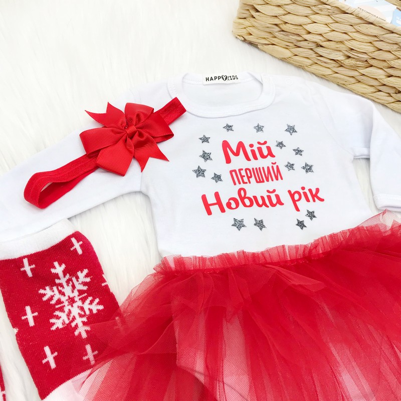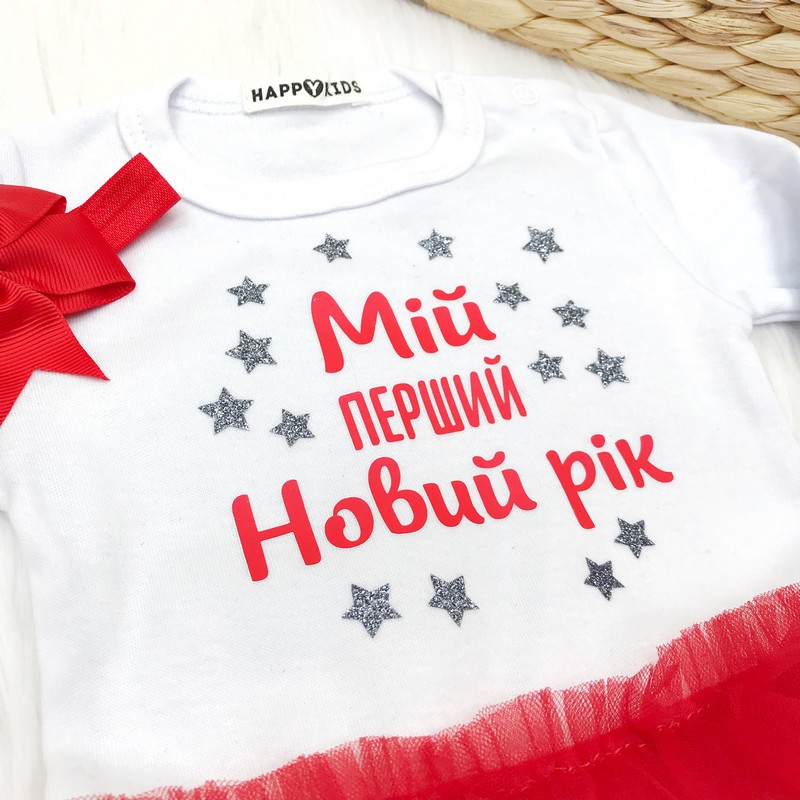 Комплект новорічний для дівчинки "Мій перший Новий рік" із зірками гліттер