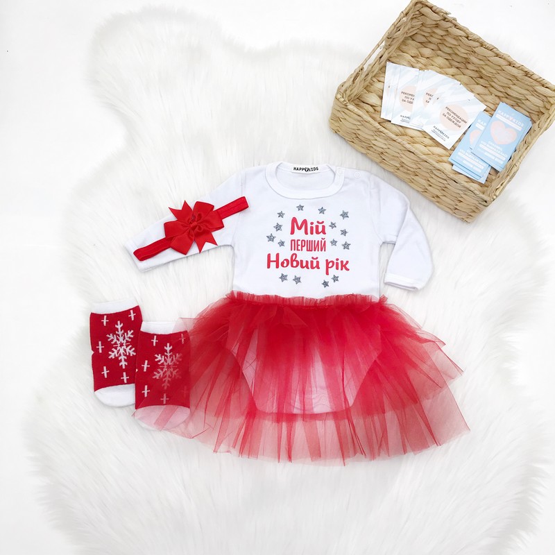 Новорічний комплект для новонародженої дівчинки та хлопчика з написом на вибір ви можете в нашому інтернет-магазині одягу для всієї родини - "HappyKids".