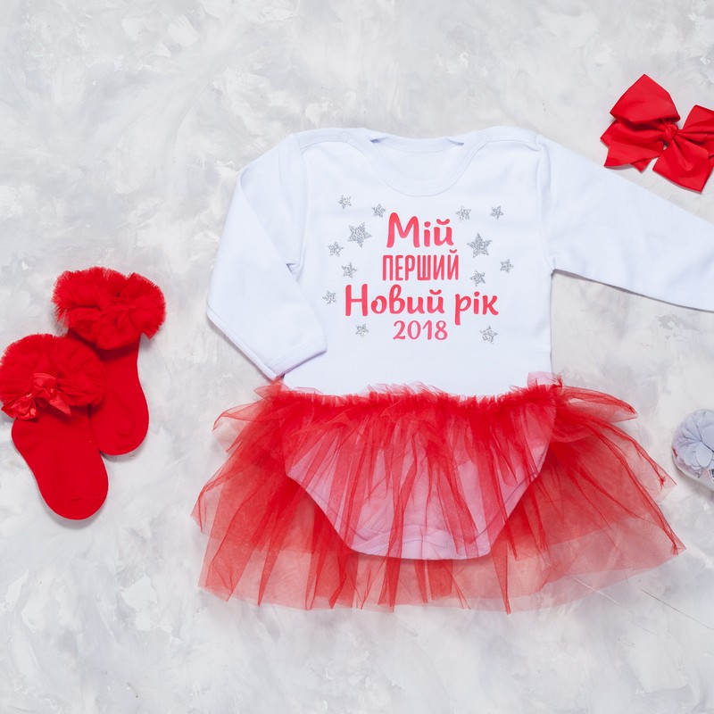 Стильний та яскравий комплект з боді дівчинці на перший новий рік та різдво!