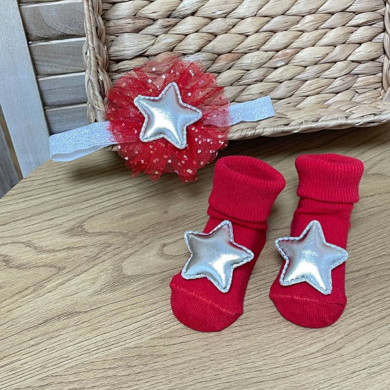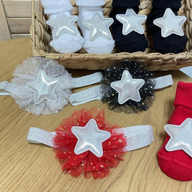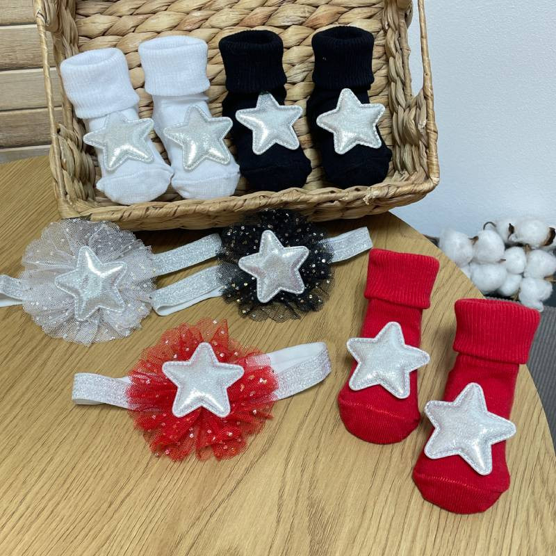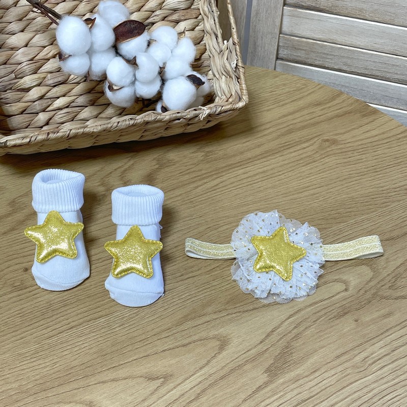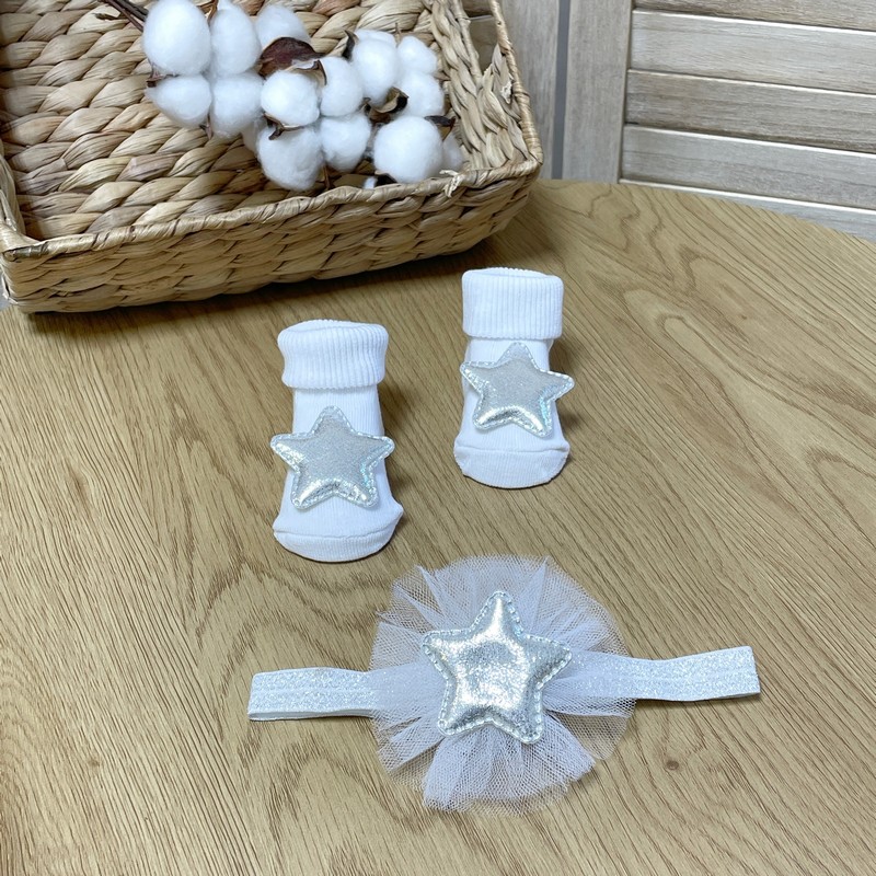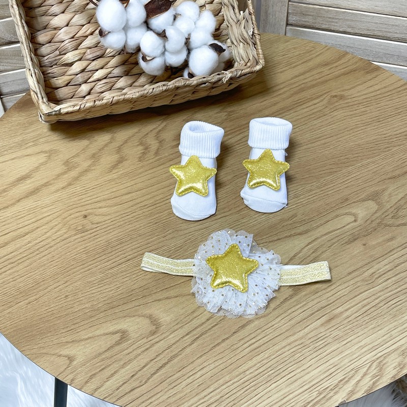 Комплект пов'язка і шкарпетки блискуча зірочка для новонародженої
