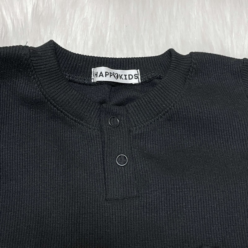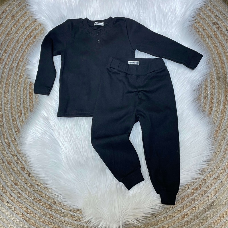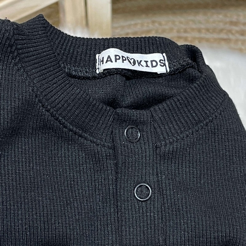 Цей чудовий комплект для хлопчика до одного року купити який, ви можете в інтернет-магазині «Хеппі Кідс» складається з кофточки з довгими рукавами, на практичних заклепках, і штанців з манжетами, які не стирчать і не будуть сповзати з ніжок. Ну а нейтральний чорний колір, робить це вбрання максимально універсальним, і тим, який буде личити кожному юному джентльмену.