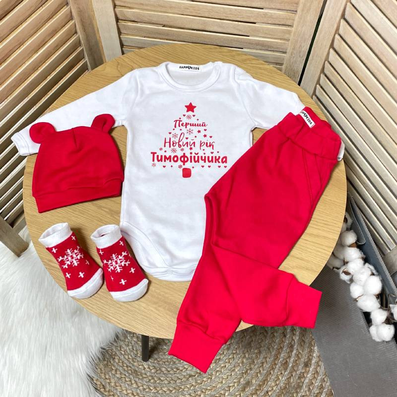 Новорічний комплект для новонародженої дівчинки та хлопчика з написом на вибір ви можете в нашому інтернет-магазині одягу для всієї родини - "HappyKids".