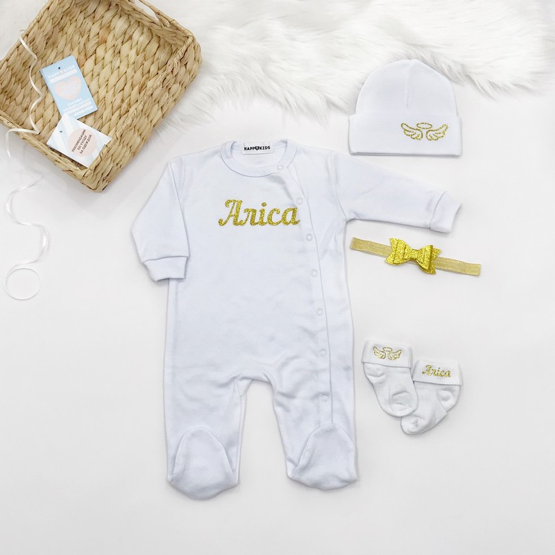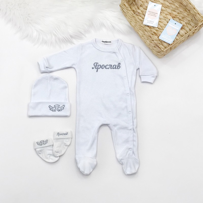 Доповнюй копплект іменною крижмою та стильним затишним комбінезоном з написом.