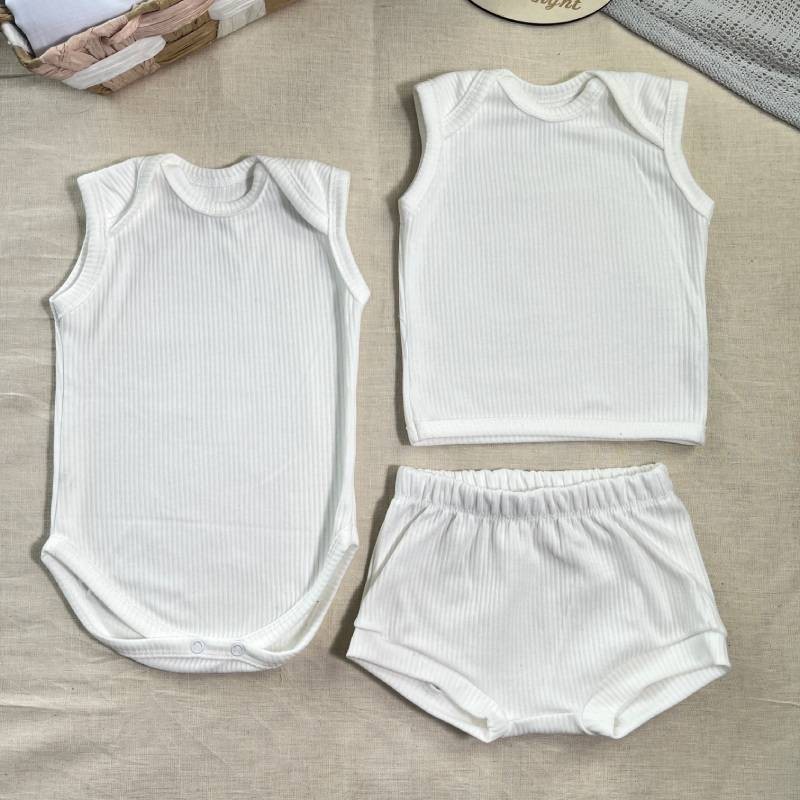 Подаруйте своєму малюку найкраще з перших днів життя з нашою літньою капсулою для новонароджених в рубчик. Це ідеальний базовий комплект одягу, розроблений спеціально для теплої пори року — з урахуванням ніжної шкіри малюків, потреб у зручності та легкості у догляді