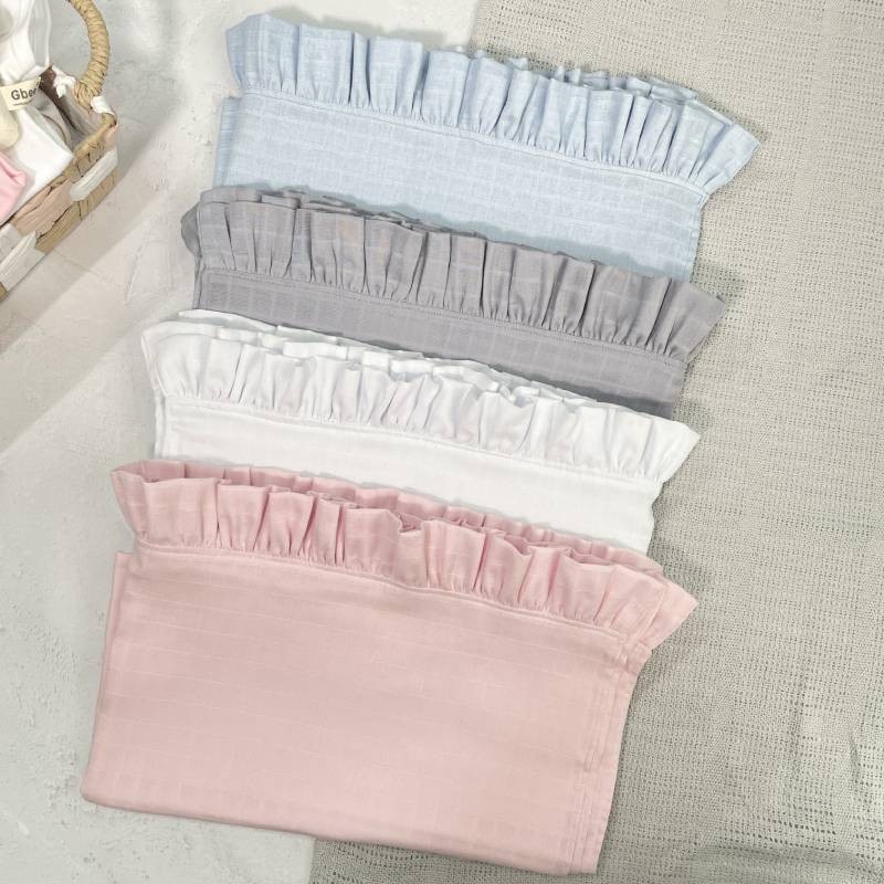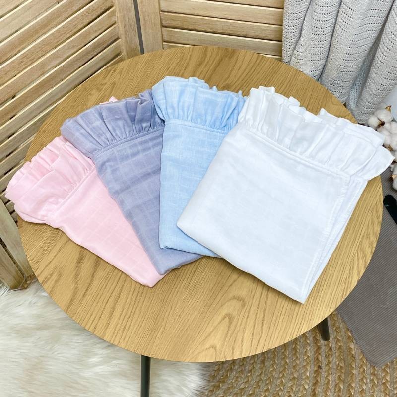 Подаруйте дитині відчуття затишку з нашим мусліновим пледом з рюшею – стильним та практичним аксесуаром, який стане незамінним у щоденному догляді. Виготовлений з 100% натурального мусліну, цей плед поєднує в собі м’якість, дихаючі властивості та естетику.