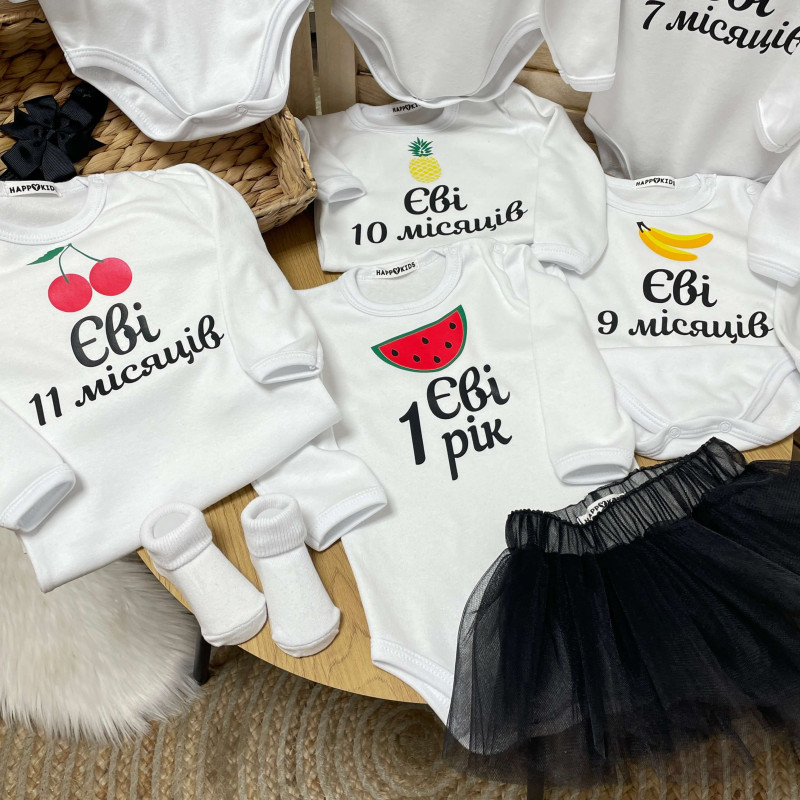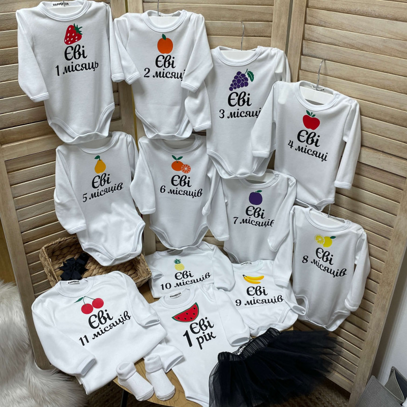 Боді для щомісячної фотосесії малюків. Роби красиві фото першого року життя малюка.