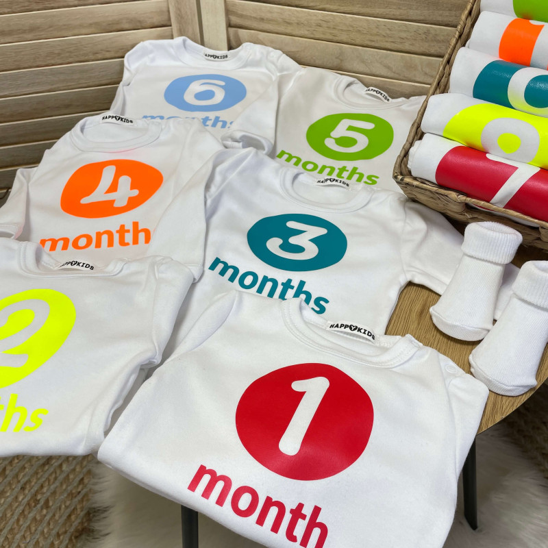 Боді для щомісячної фотосесії хлопчику або дівчинці. Роби красиві фото першого року життя малюка.