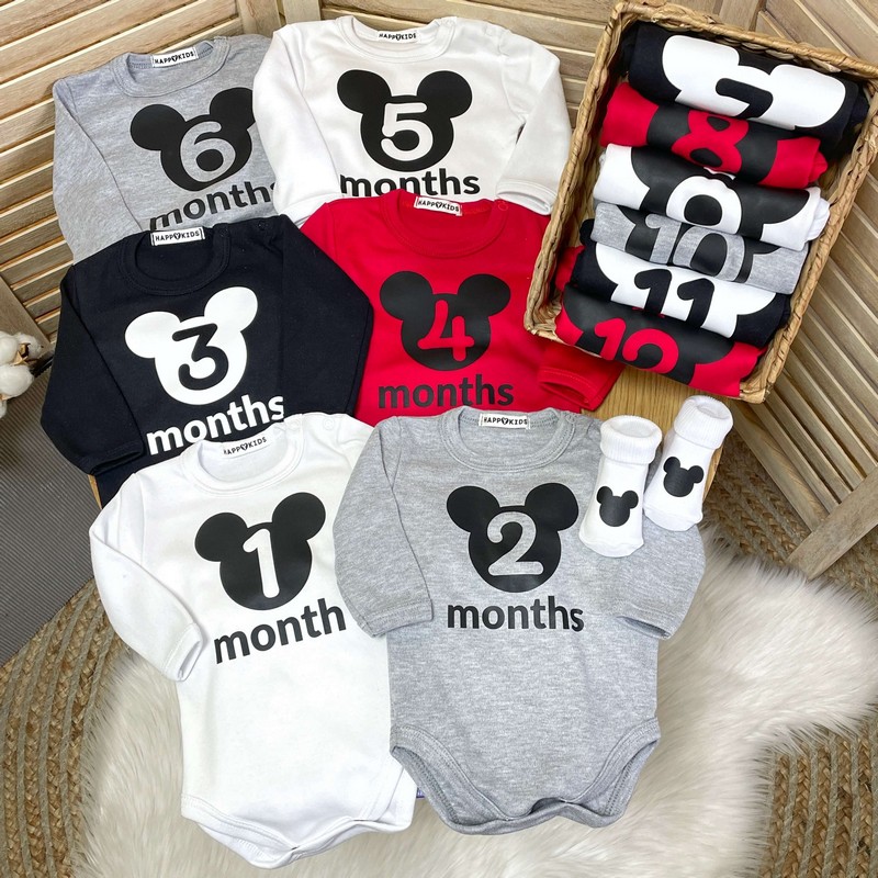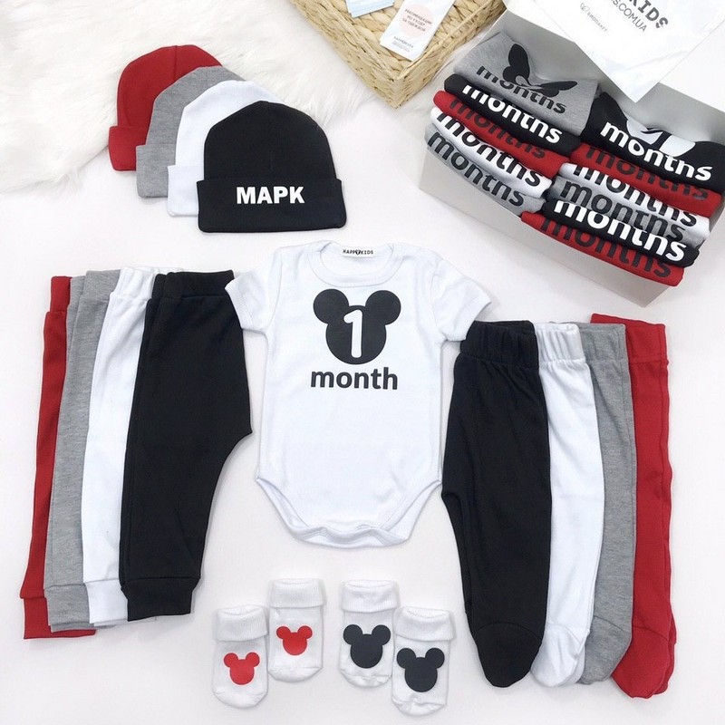 Нарядний набір 12 боді для щомісячної фотосесії першого року життя дитини. Боді з цифрами по місяцях до року допомож робити гарні фотосесії новонародженого кожного місяця
