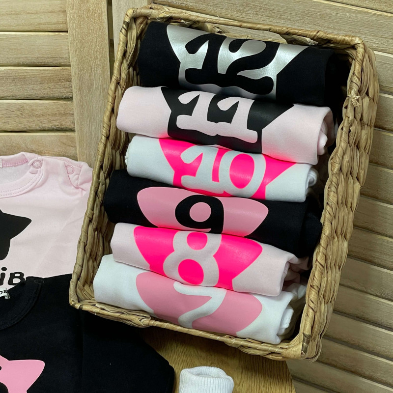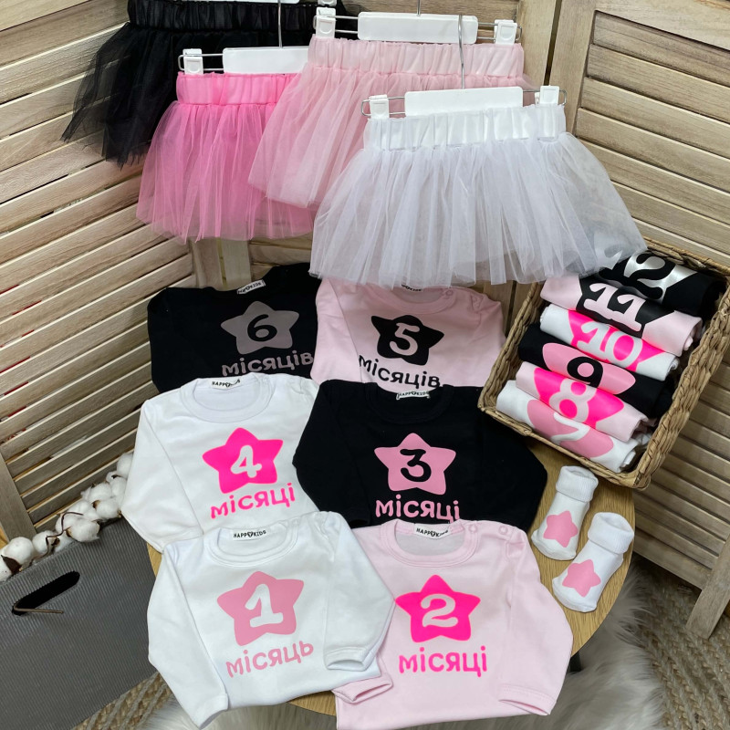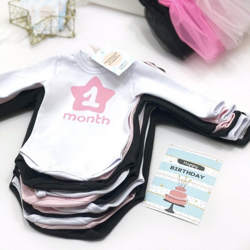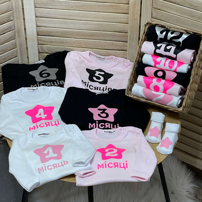 Нарядний набір 12 боді для щомісячної фотосесії першого року життя дитини. Боді з цифрами по місяцях до року допомож робити гарні фотосесії новонародженого кожного місяця