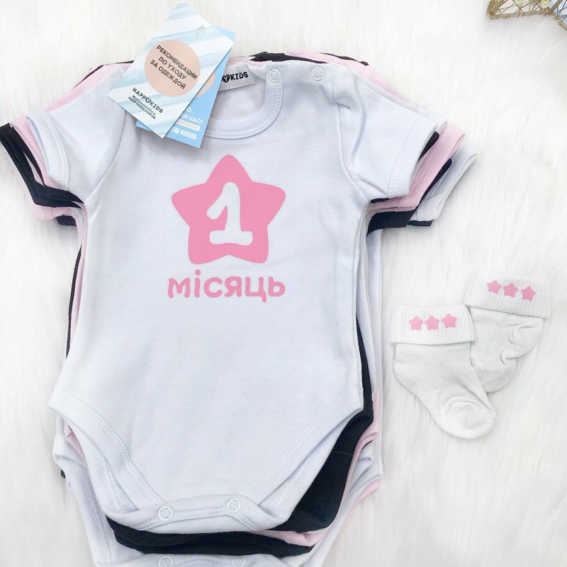 Боді для щомісячної фотосесії малюків. Роби красиві фото першого року життя малюка. Милий принт з зірочками такий гарний та стильний.