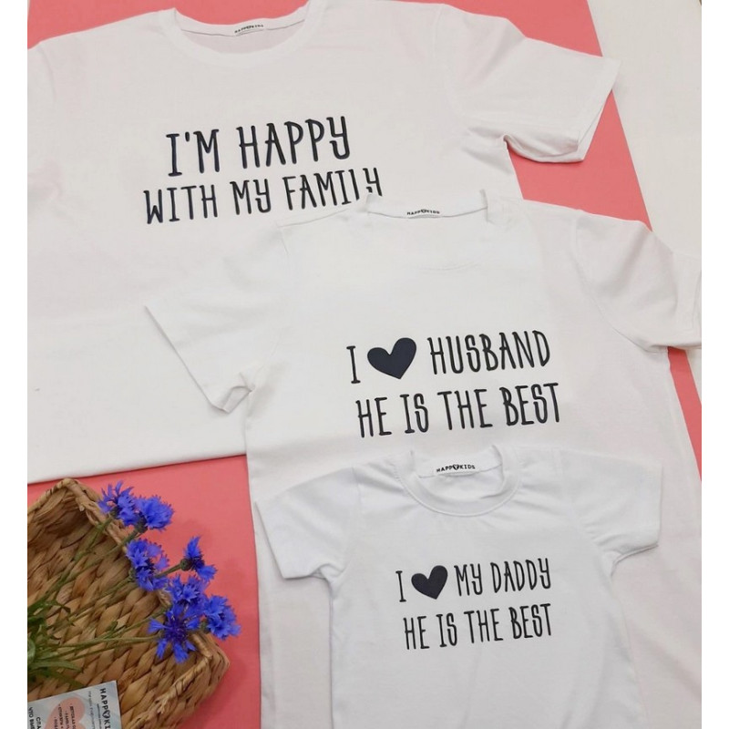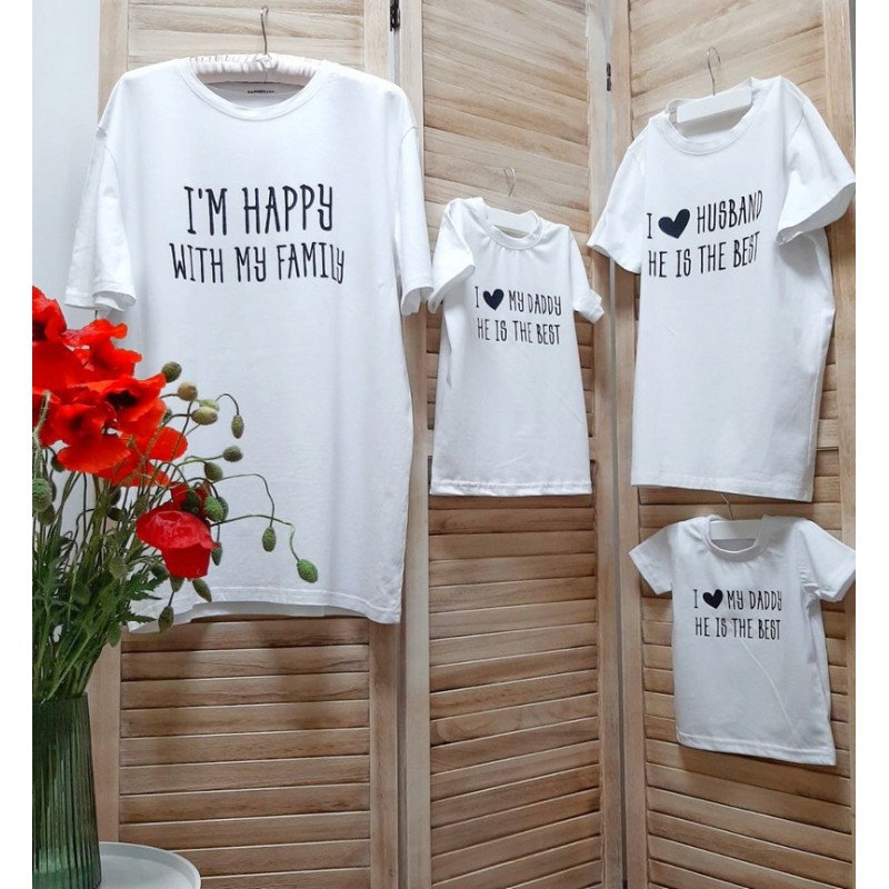 Комфортні футболки в одному стилі з оригінальним написом найкращий вибір для всієї родини ідеально підходить одяг на перший день народження дитини. Також чудова ідея для сімейної фотосессії або родинного свята.