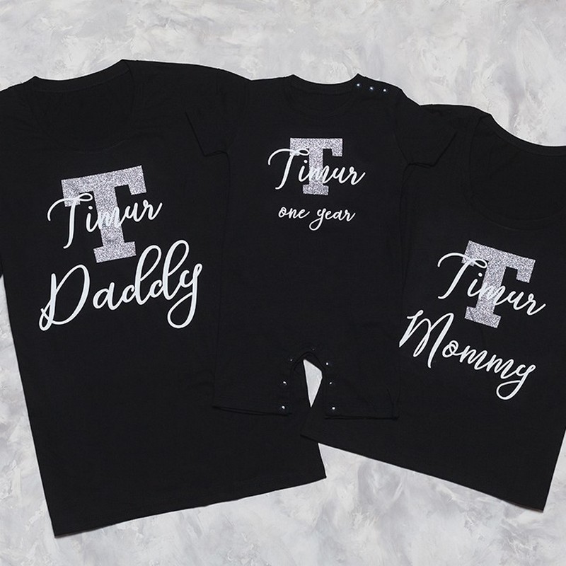 Комфортні футболки в одному стилі найкращий вибір для всієї родини ідеально підходить одяг на перший день народження дитини.