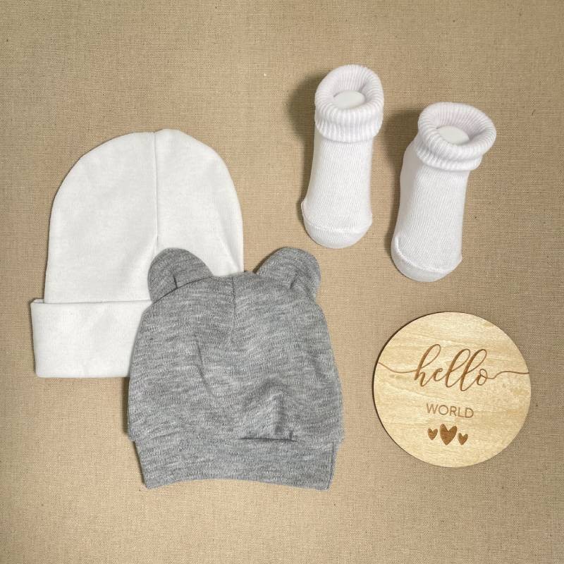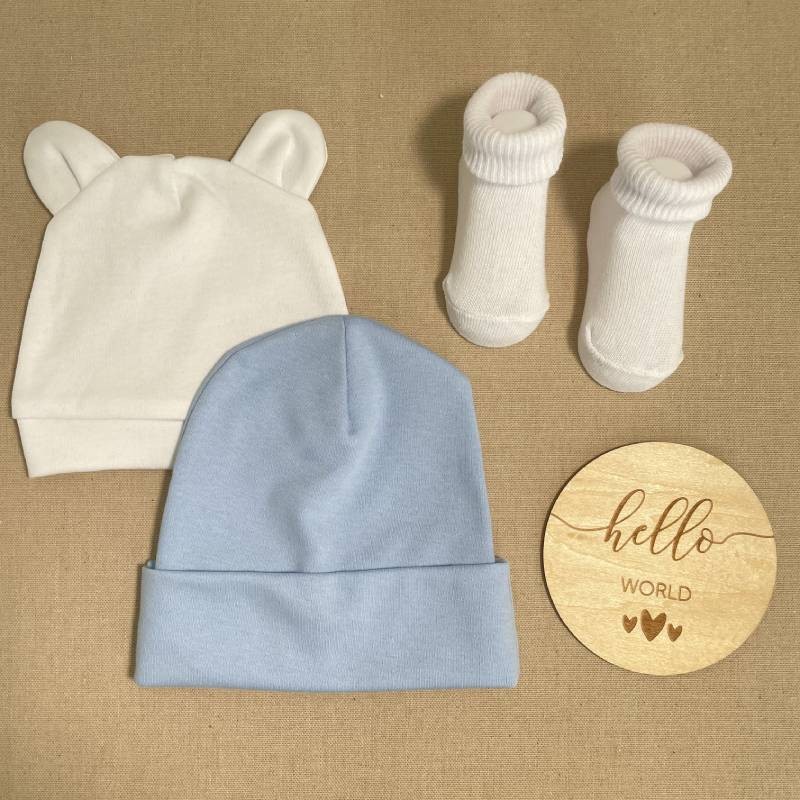 Набір базових шапочок зі шкарпетками – це ідеальне рішення для турботливих батьків, які хочуть подарувати своєму малюку найкраще. Цей набір створений із урахуванням усіх потреб немовлят.