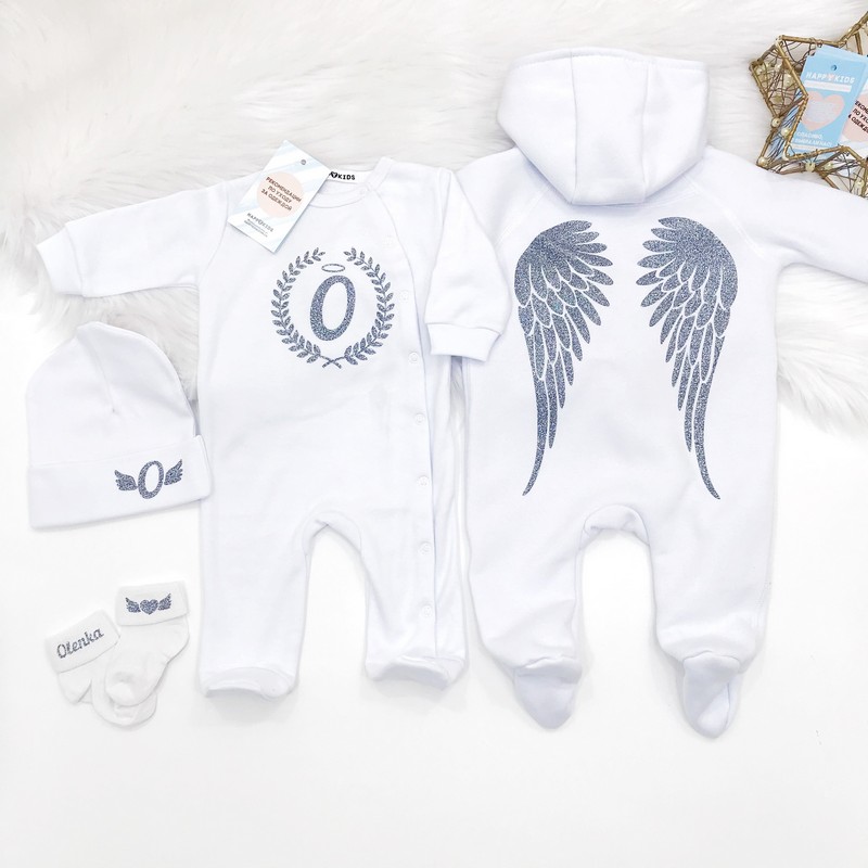 Такий набір як цей, безсумнівно буде личити вашому малюку. В якому він виглядатиме як справжній ангел. Залишилося тільки купити набір дитячий з ініціалами та крильцями.