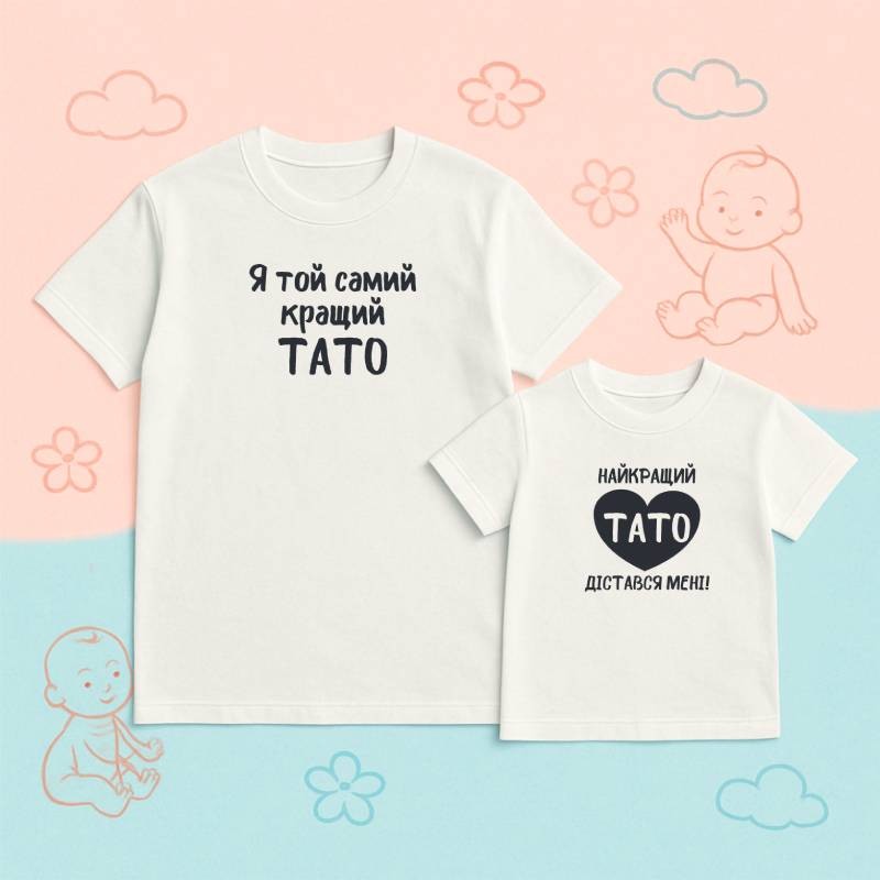 Подаруйте собі і своїй дитині яскраві емоції разом із стильним набором футболок із написами "Найкращий тато дістався мені" та "Той самий тато". Цей комплект – ідеальний вибір для татусів, які з гордістю несуть звання найкращого батька, і для дітей, які це цінують.