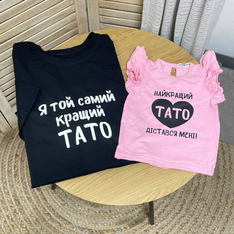 Набір футболок з написом "Найкращий тато дістався мені/той самий тато"