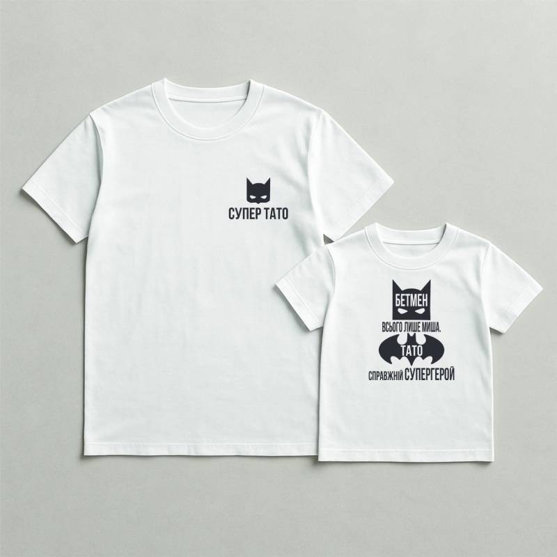 Подаруйте татові те, що підкреслює його унікальність! Набір стильних футболок з написами "Супер тато" та "Справжній супергерой тато" – це не просто одяг, а прояв любові та поваги до головного героя в житті кожної дитини.