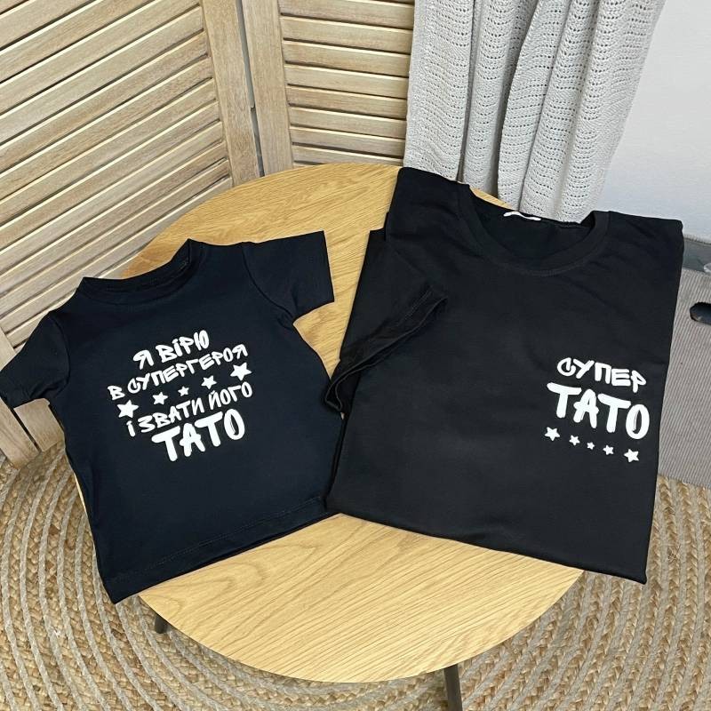 Здивуйте своїх близьких оригінальним подарунком – набір парних футболок "Супер тато / Я вірю в супергероя" створений спеціально для татусів та їхніх маленьких героїв. Цей дует – більше, ніж просто одяг: це щоденне нагадування про силу батьківської любові та віру дитини в справжнього героя – свого тата.