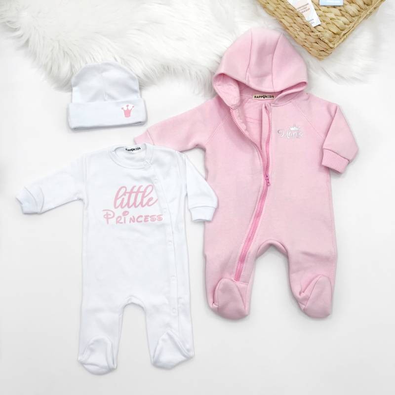 Створіть неповторний образ для своєї маленької принцеси з ексклюзивним набором одягу з іменем для новонародженої дівчинки. Цей набір стане ідеальним вибором для виписки з пологового будинку, фотосесії або першої зустрічі з рідними.