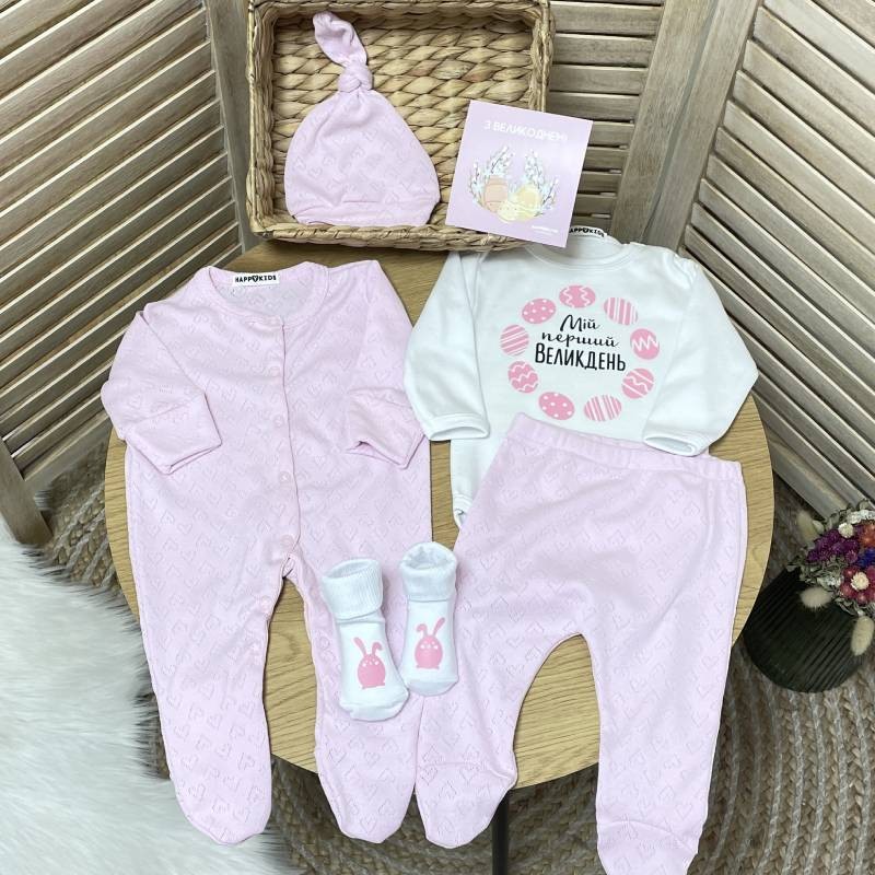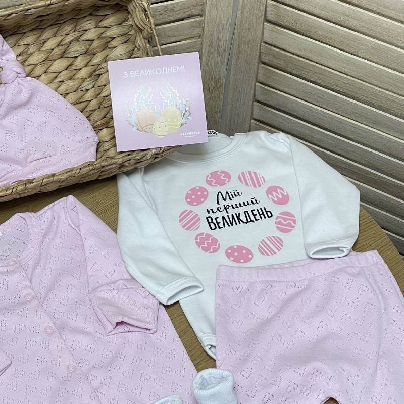 Зробіть перший Великдень вашої маленької принцеси незабутнім! Святковий набір одягу для новонародженої дівчинки створений, щоб подарувати комфорт, ніжність і чарівний вигляд у цей особливий день.