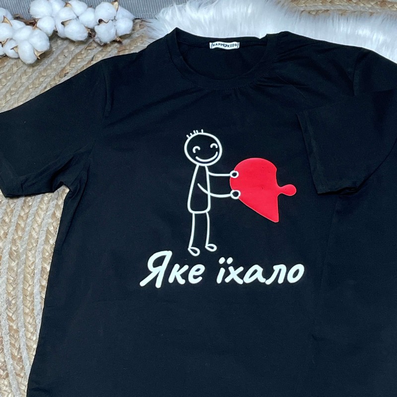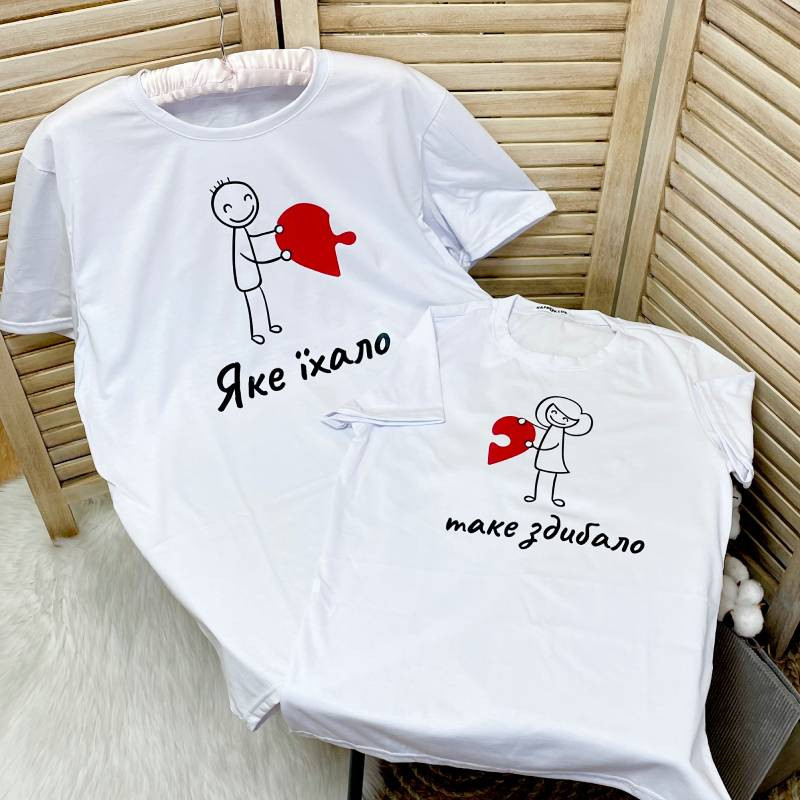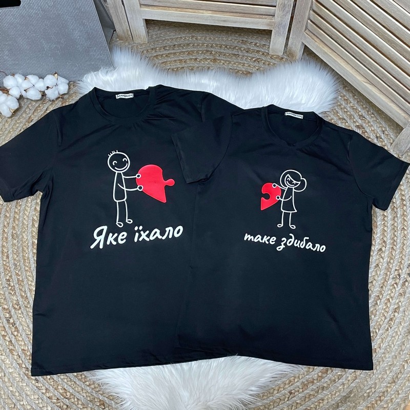 Набір парних футболок "Яке їхало таке здибало", це саме той тандем, в якому як хлопець, так й дівчина, будуть виглядати особливо стильно, оригінально, та яскраво. До того ж, підіймаючи настрій оточуючим, та без слів демонструючи своє сталення один до одного.