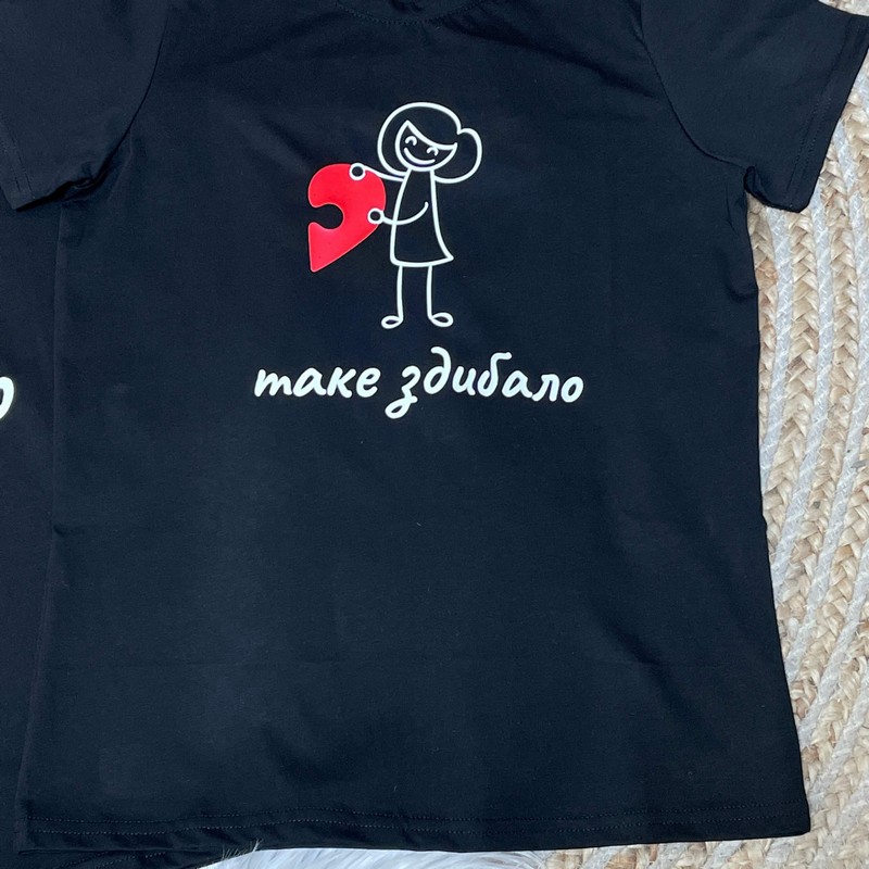 Чудові парні футболки "Яке їхало, таке здибало", обов*язково знайдуть масу прихильників, та будуть пасувати будь кому. Поперш за все, завдяки універсальному чорному кольору. Також, вони чудово підійдуть не тільки під джинси, але й любий другий "низ".