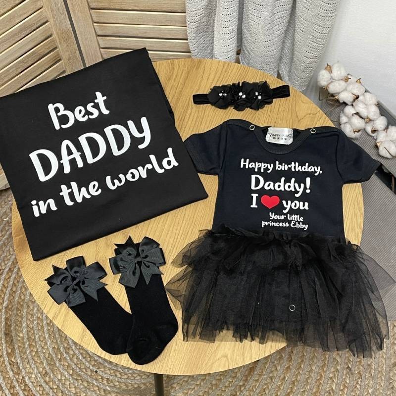 Стильний та зворушливий набір парних футболок для тата і доньки — це ідеальний подарунок для справжнього героя в житті дівчинки. Футболки з написом "Best daddy in the world" стануть чудовим вибором для спільних прогулянок, фотосесій, свят або просто як прояв вашої любові.