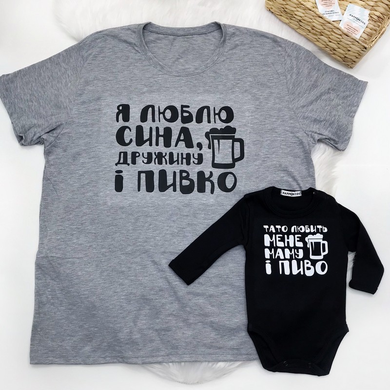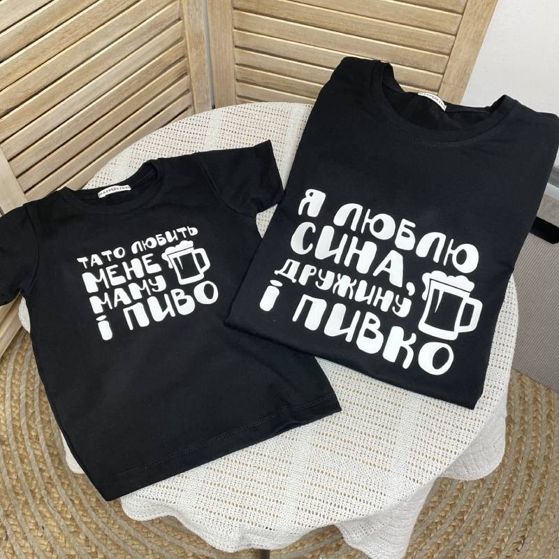 Набір сімейних 2-х футболок з написом "Тато любить пиво"